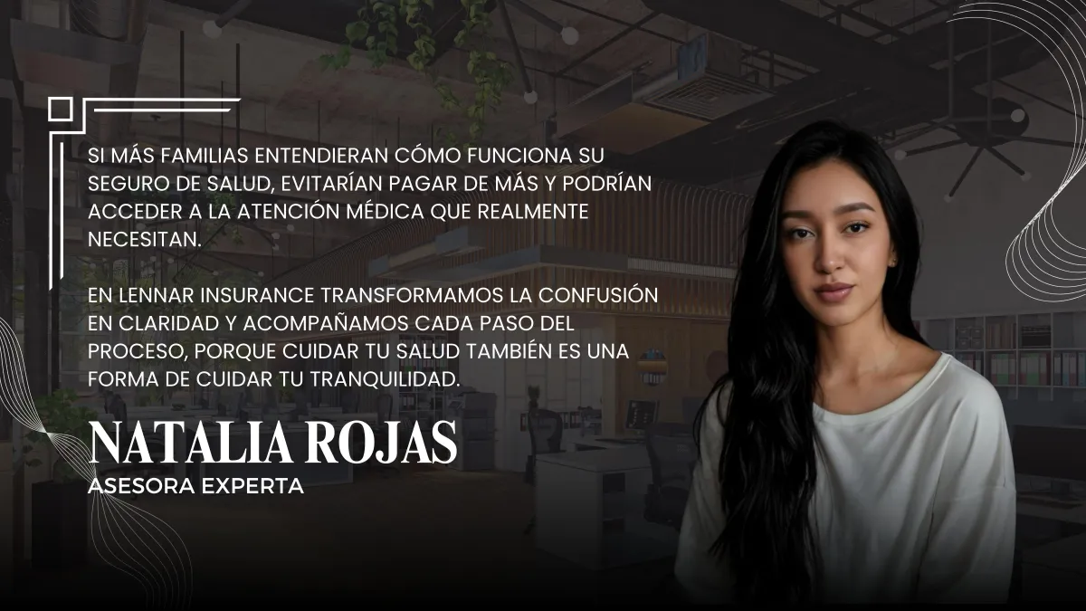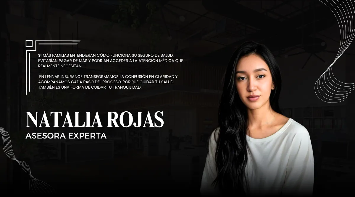 Antes tenía seguro, pero nunca entendía cómo usarlo. Con Natalia fue totalmente distinto. Me explicó todo paso a paso y ahora sé exactamente qué cubre mi plan y cómo hacer mis citas médicas. Me siento acompañada y tranquila.